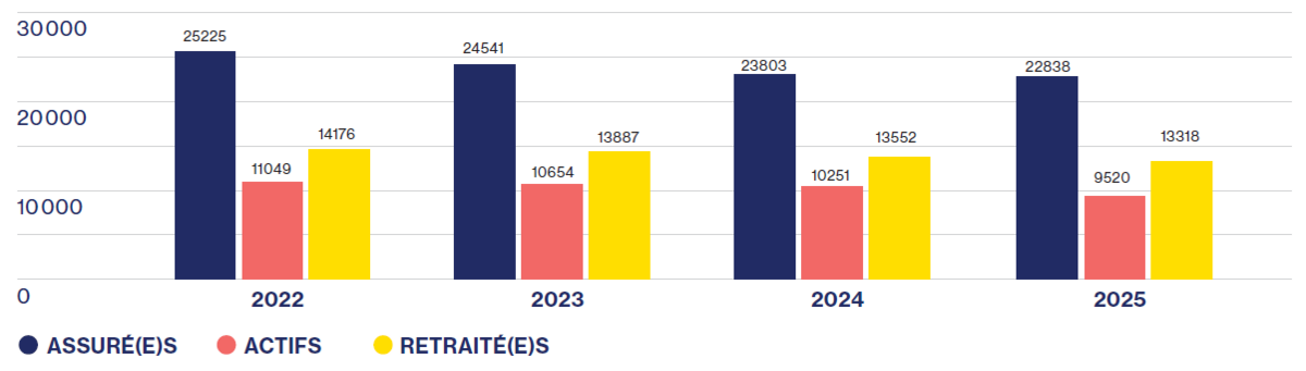 Quelques données statistiques de la Caisse de pensions Novartis 1, extraites du rapport de l’expert actuariel: 9 520 assuré(e)s au 31 décembre 2025 (année précédente: 10 251). Le nombre des bénéficiaires de rentes était de 13 318 (année précédente: 13 552), dont 8 487 personnes touchaient une rente de vieillesse, 260 une rente d’invalidité et 4 067 une rente de veuve ou de veuf. Les 504 autres rentes en cours étaient des rentes pour orphelins etenfants. Le revenu moyen des bénéficiaires de rentes s’élevait à 39 902 (année précédente: 40 092) francs.